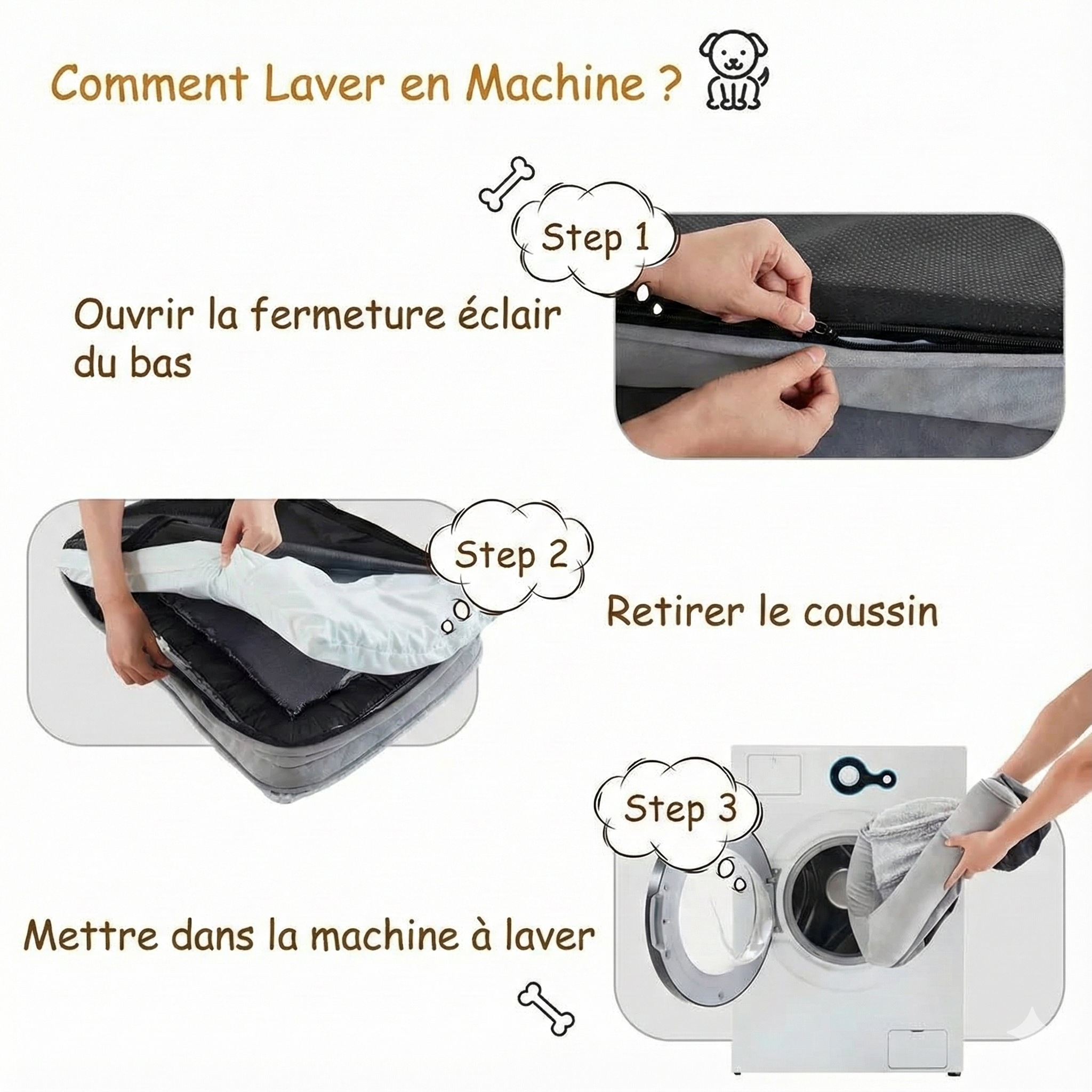 Housse entièrement déhoussable et lavable en machine. Fini les mauvaises odeurs.
