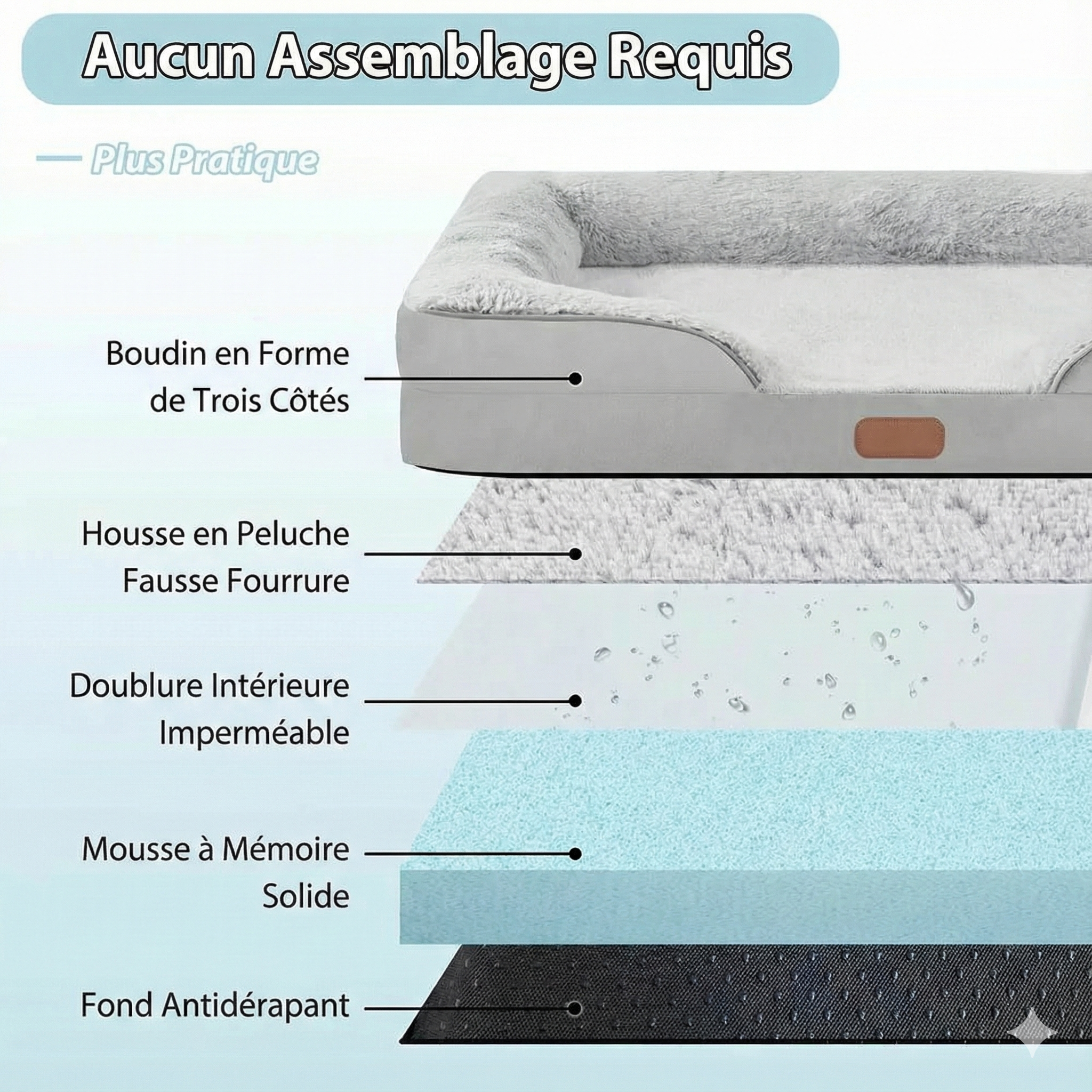 Base antidérapante perlée pour que le lit reste en place, même lors des jeux.