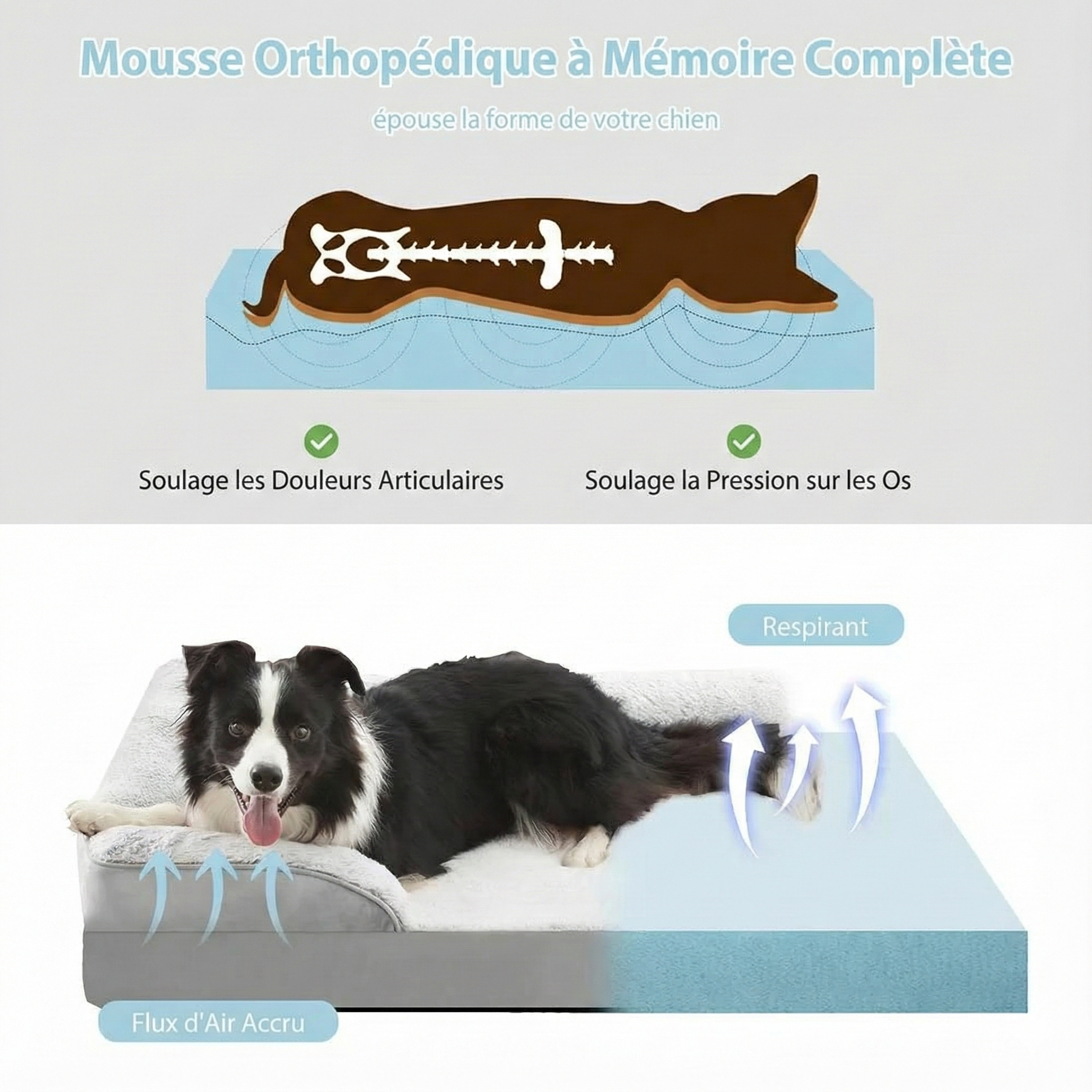 Mousse à mémoire de forme haute densité qui soulage les articulations et offre un sommeil réparateur.